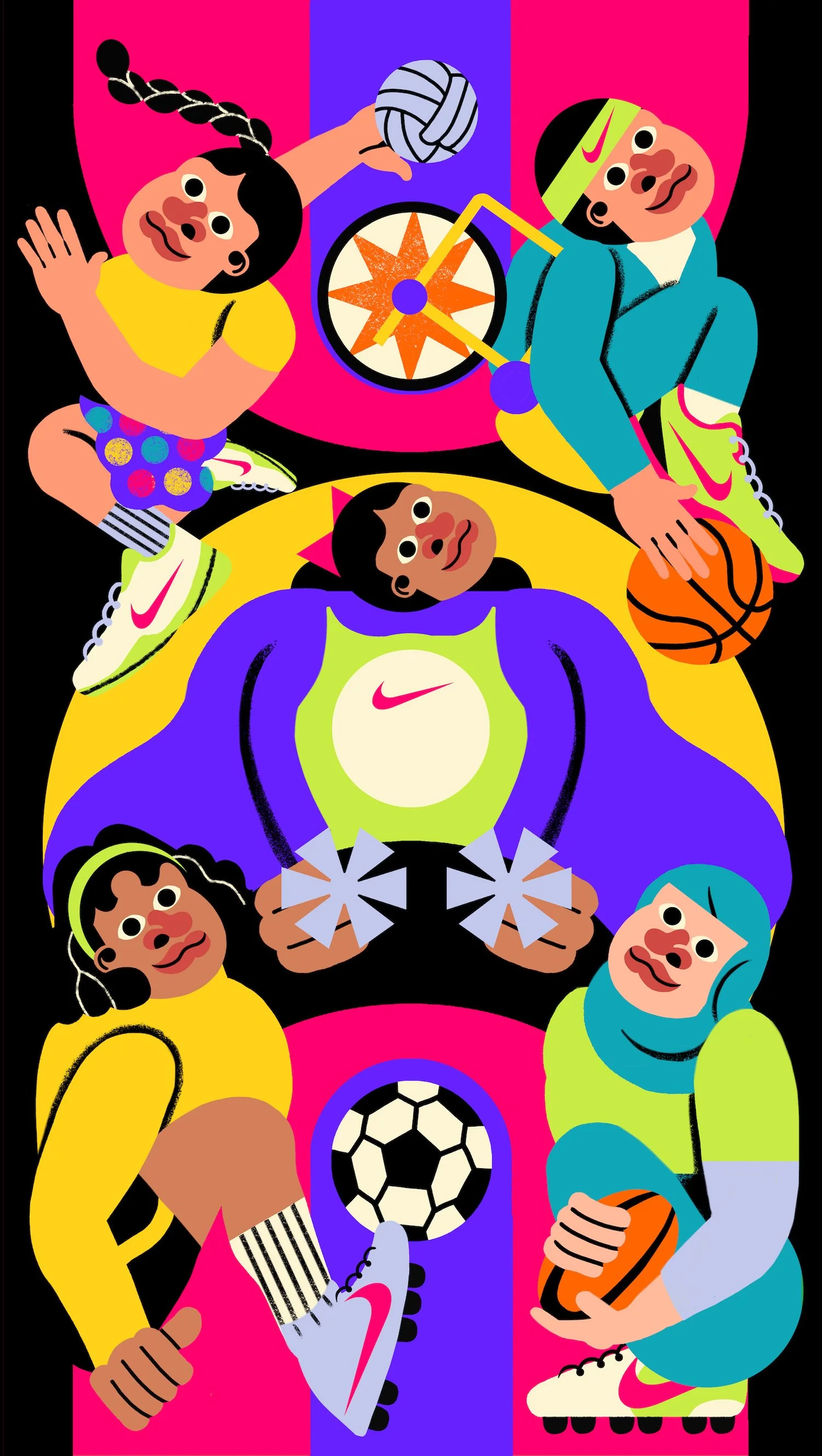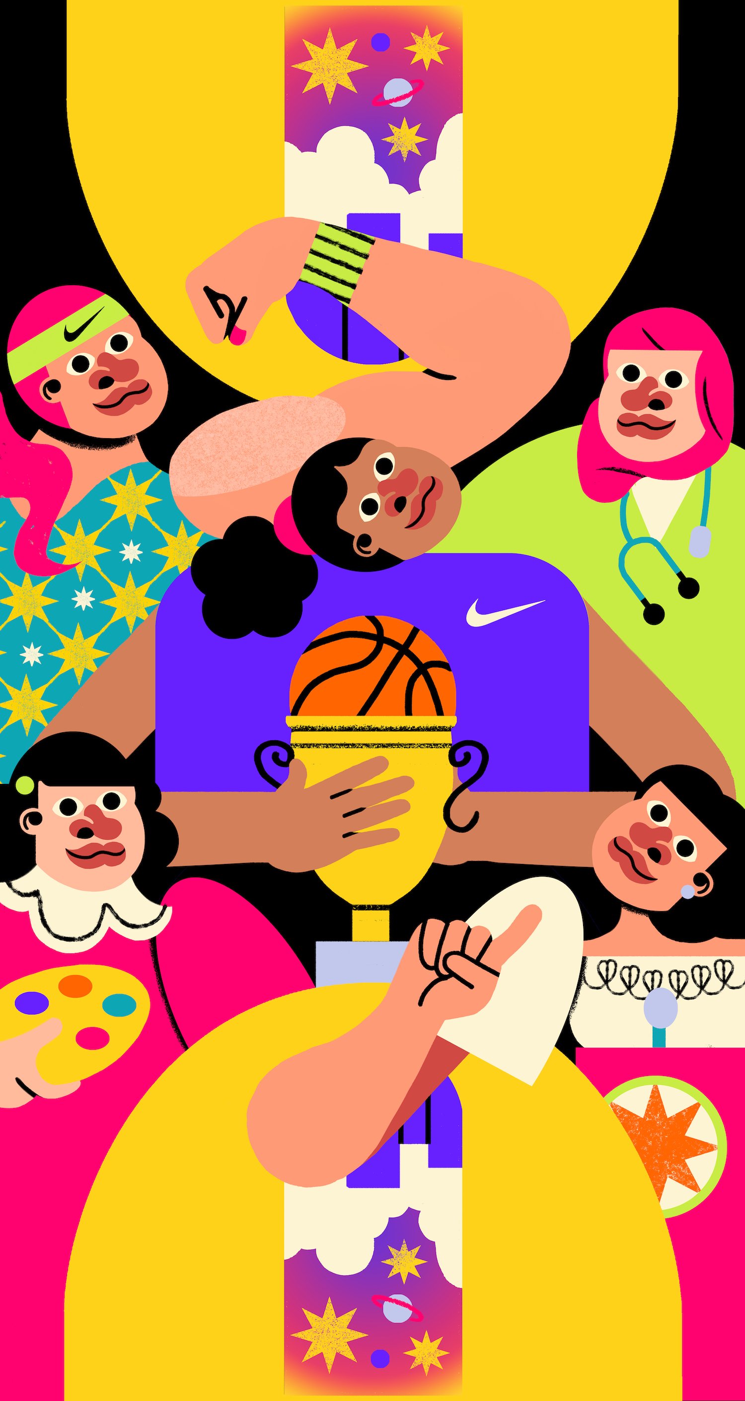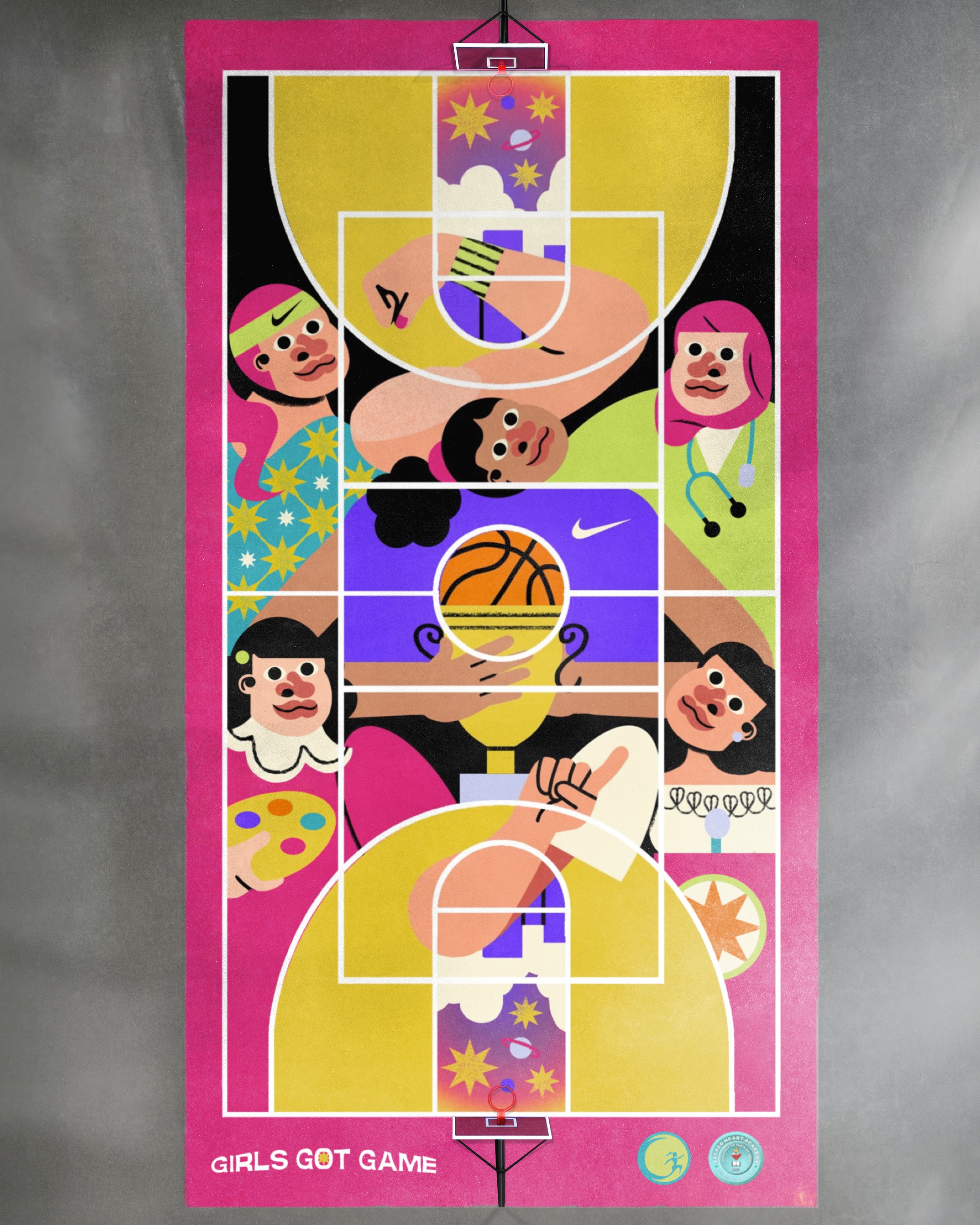 Apart from the two home courts, I also created several key visuals that represent the girls of Girls Got Game. These visuals were incorporated into my Nike By You x Jill Arteche collection, which was featured as another aspect of the Play New campaign.