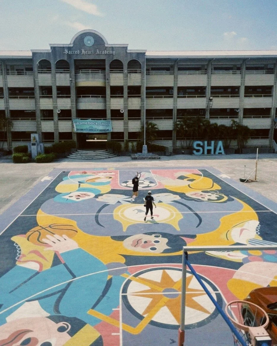 I had the greatest pleasure of creating the court designs, which were painted by Honeycomb Arts on two refurbished multipurpose courts at Sacred Heart Academy in Santa Maria, Bulacan, Philippines.